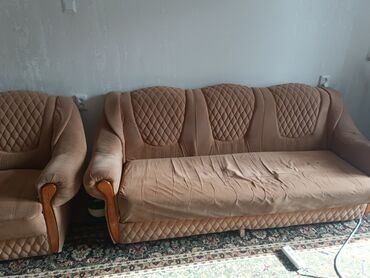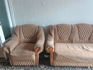 - Детали: устойчивые ножки, цельные спинки, объемные боковины; на сиденье дивана предусмотрена накидка/чехол.