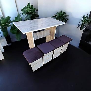 - Практично для небольших помещений: табуреты хранятся внутри базы стола, образуя аккуратный моноблок.