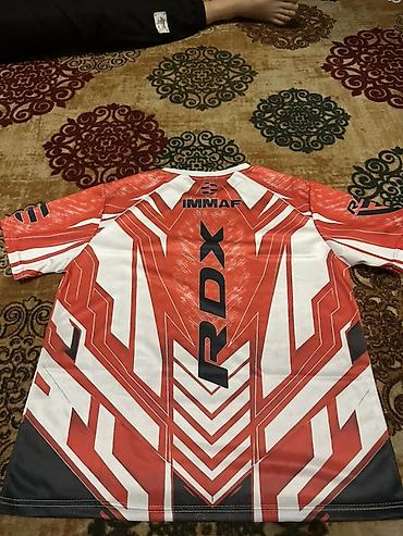 - Дизайн: яркий геометрический принт в красно‑бело‑чёрной гамме; логотипы RDX и IMMAF спереди и сзади.