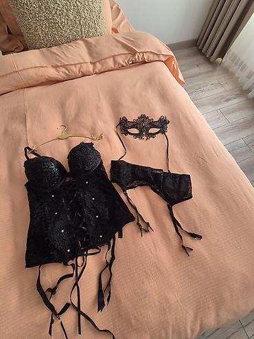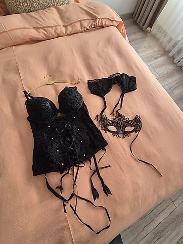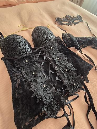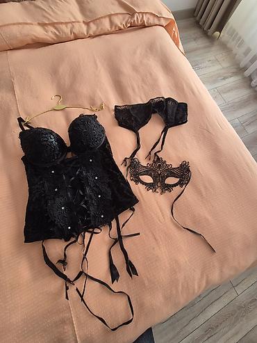 Что входит: корсет с подвязками, кружевной пояс для чулок, кружевная маска.