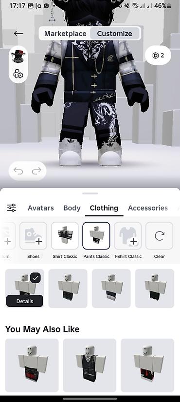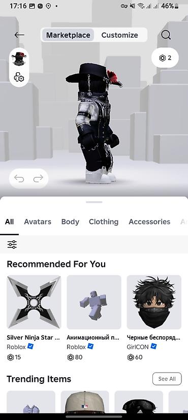 - Вкладки Marketplace и Customize с активными категориями Clothing и Accessories.