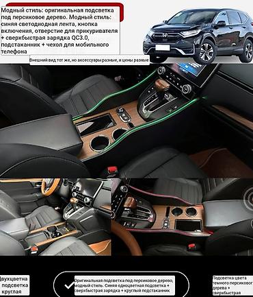 Комплект тюнинга центрального тоннеля для Honda CR‑V: декоративные панели и аксессуары с интегрированной подсветкой и функциями быстрой зарядки.