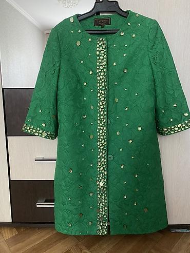 - Декор: россыпь золотистых пайеток и аппликаций по борту, рукавам и полочке