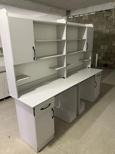 - Тумба слева/справа (в зависимости от модели на фото) с распашной дверцей и ящиком для принадлежностей.