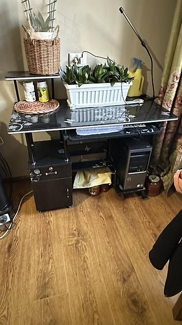Размер Высота 125 см ширина 100 см глубина 70 см Особенности: С полками Материал каркаса: Металл Материал столешницы: ЛДСП Компьютерный стол. Характеристики: Основная столешница эргономичной формы...