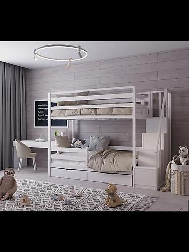 - Лестница‑комод сбоку: каждая ступень — выдвижной ящик для игрушек, белья и мелочей.