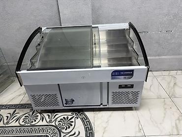 Габариты по фото — среднеформатная витрина (ориентировочно ширина около 120–140 см). Питание: от сети 220 В.