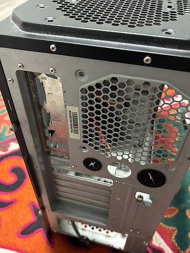 - Задняя панель: вырез под материнскую плату ATX/microATX, слоты расширения, заглушка видеовыхода DVI в одном из слотов (на фото), отверстия с резиновыми втулками для СВО
