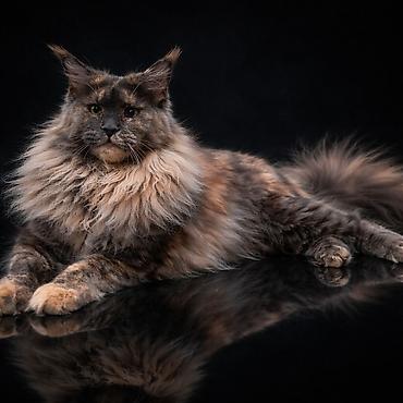 Роскошная кошка Мейн-кун, окраc «голубая черепаха», великолепный
