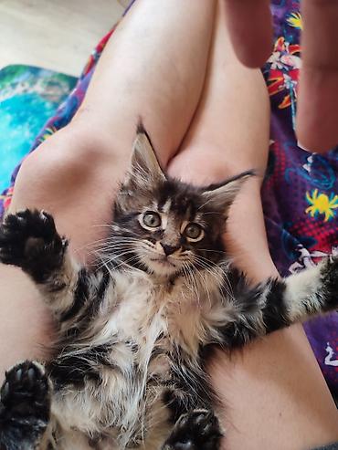 - Особенности породы: крупный костяк, длинное мускулистое тело, широкий грудной отдел, массивные лапы, большие уши с кисточками, густая полудлинная шерсть, умный взгляд. Мейн-куны быстро привыкают к дому и легко обучаются простым командам.