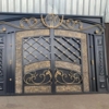 Кованые двустворчатые ворота с декоративными элементами. -