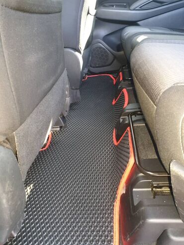 - Форма: выкройки по контуру пола, передние коврики с площадкой под пятку водителя; задний — сплошной перемычкой на тоннель.