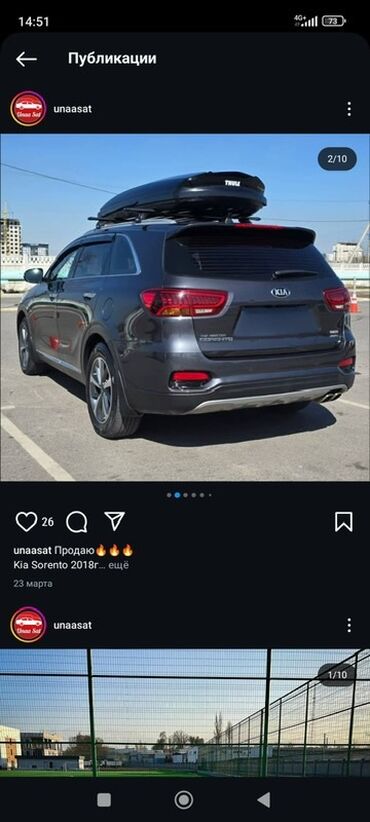 Kia Sorento, 2018 год. Просторный кроссовер в темно‑сером цвете.