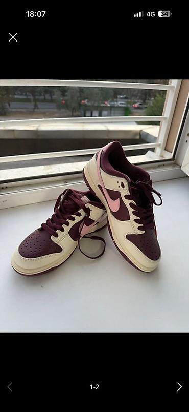 - Цветовая гамма: бордовый верх с молочными панелями и розовым Swoosh; бордовые шнурки и подкладка