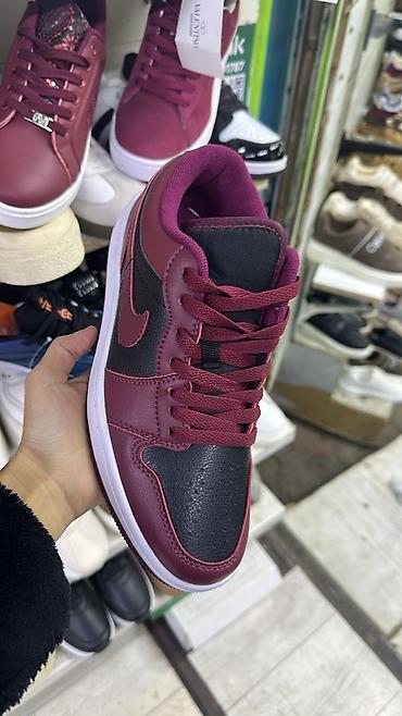Кроссовки низкие, бордово‑черные.
