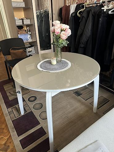 Круглый обеденный стол с глянцевой столешницей производство Россия