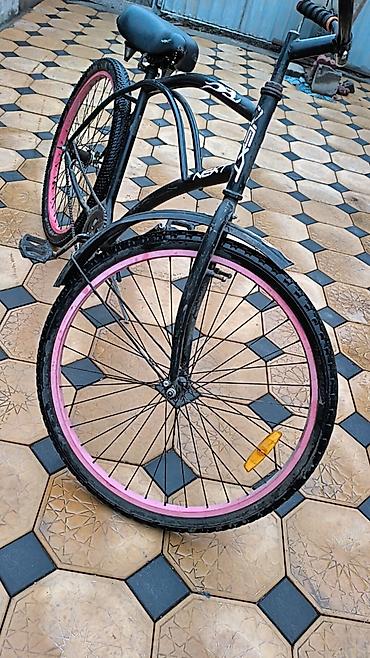 - 26-дюймовые колёса с розовыми ободами, покрышки с протектором для асфальта и грунтовых дорожек
