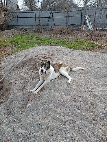 Собака крупного размера, Окрас бело-тигровый: спина и бока тигровые, грудь, шея, живот и лапы белые; морда тёмная с белой отметиной. Корпус мощный, высокий рост, крепкие лапы, густая короткая шерсть. Хвост средней длины, слегка изогнут. Уши полустоячие, голова широкая. Активная, внимательная, любит играть и таскать палки/предметы. Подойдёт для охраны двора или частного дома, быстро привыкает к территории, ориентирована на человека. Требует регулярных прогулок и базовых команд.