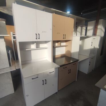 Всегда в наличии готовые кухонные гарнитуры и буфеты различных расцветок. Размер: ширина 1,5 метра, 2 метра в высоту. Также можете приобрести без мойки за 12500сом тысяч сом, а с мойкой цена бу...