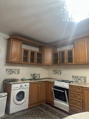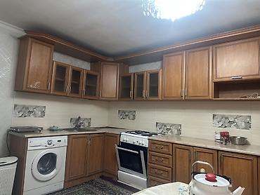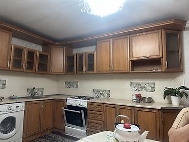 - В комплекте на фото присутствуют: газовая плита с духовкой, вытяжки нет; стиральная машина установлена в нижний ряд.