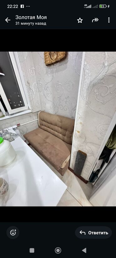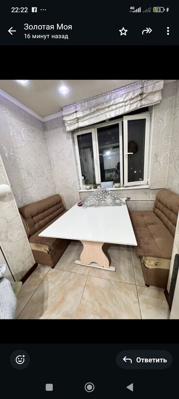 - Особенности на фото: на углах сидений видны потертости/разрывы обивки; на сиденьях заметны следы эксплуатации; кромки столешницы местами с зазубринами/сколами.