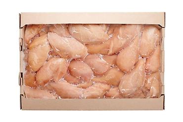 - Куриное филе/грудка без кости и кожи, замороженное, блоковая укладка в картонные короба.