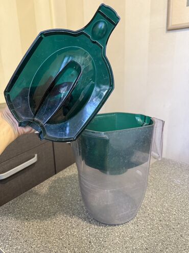 Комплектация: кувшин, воронка, крышка. Картридж устанавливается отдельно. Цвет: прозрачный корпус, зелёная воронка и крышка.