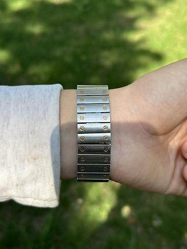- Браслет: стальной, звенья с декоративными винтами золотистого цвета по центру звеньев, раскладывающаяся застёжка.
