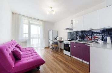 - Кухня полностью оборудована: варочная панель и духовой шкаф, вытяжка, холодильник, микроволновка, электрочайник, стол и стулья. Есть посуда и базовые кухонные принадлежности.