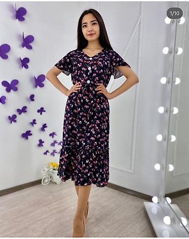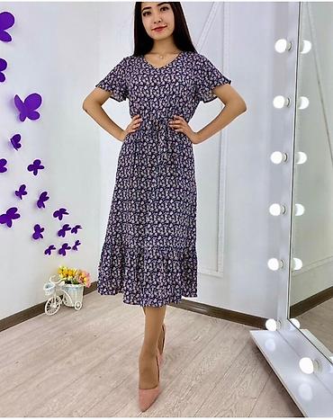 Легкое женское платье миди с цветочным принтом. Штапель ткань -