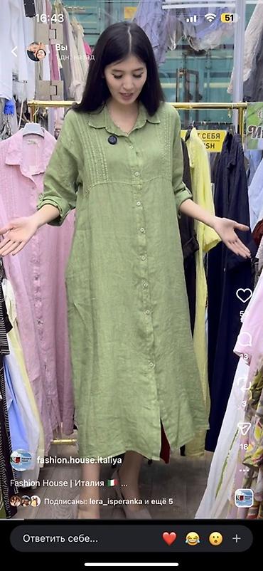 Льняное платье-рубашка 100% LINО - Натуральный лен: легкий