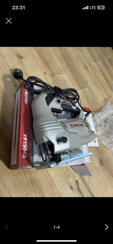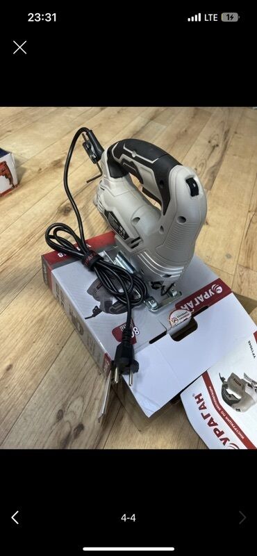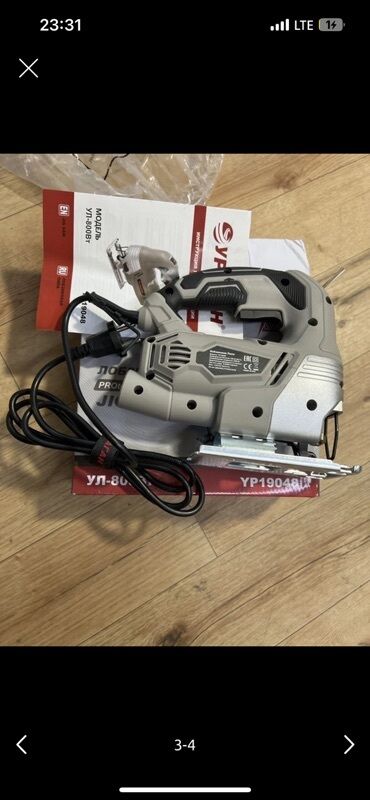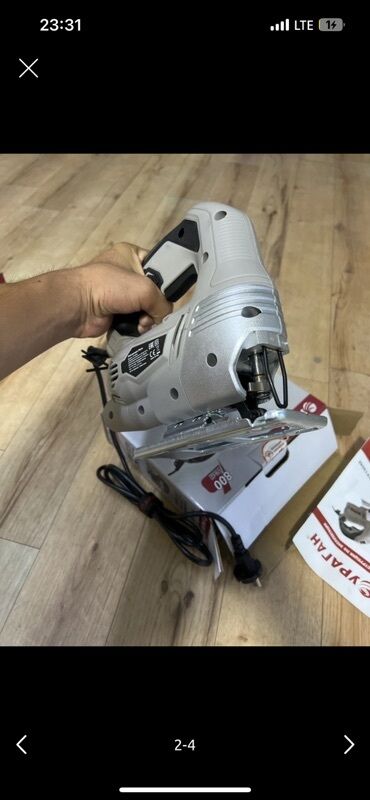 - Комплектация на фото: лобзик, руководство/инструкция, коробка
