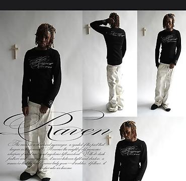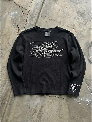 - Принт: крупная каллиграфия «Let’s Forget Raven» спереди; монограмма на манжете