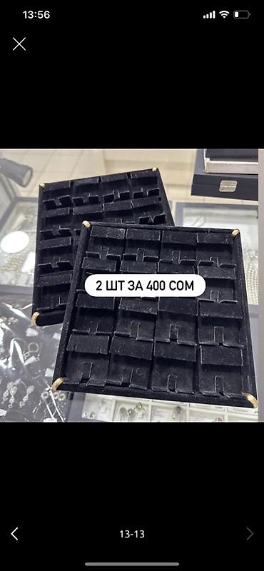 - Черные модульные лотки под кольца/серги с прорезями и клапанами-держателями. Комплект: 2 шт за 400 сом (указано на фото).
