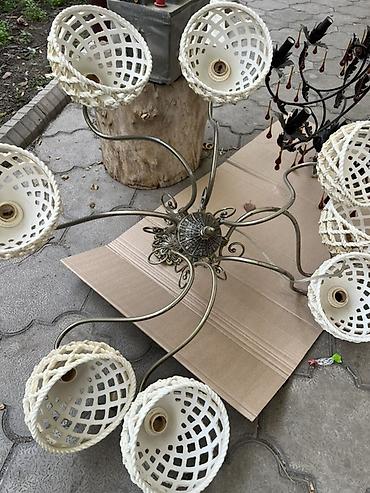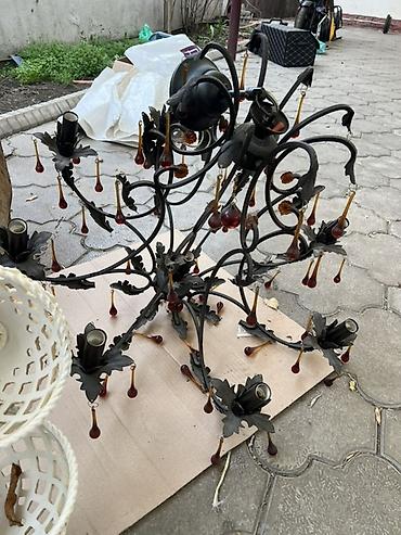 Люстры потолочные, 2 модели. 1) Кованая многорожковая люстра в