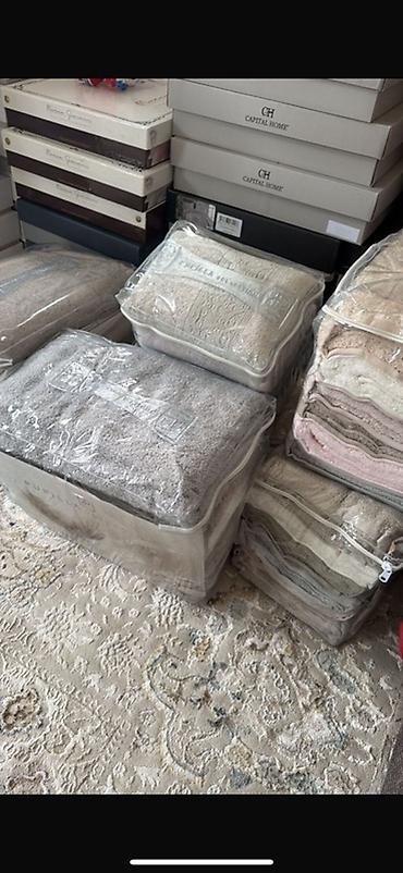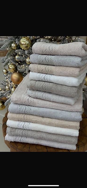 - Комплектации на выбор: наборы из нескольких полотенец разных размеров (на фото — стопки из больших и средних)