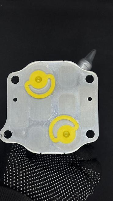 - Конструкция: два патрубка, монтажная плита с четырьмя крепёжными отверстиями, технологические заглушки на входах/выходах