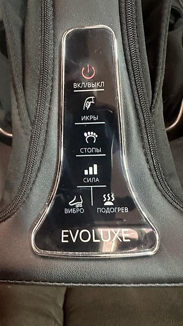 Подходит для расслабления уставших ног, улучшения кровообращения, прогрева мышц после рабочего дня или тренировки. Управление интуитивное, можно комбинировать режимы и настраивать интенсивность под себя. Бренд EVOLUXE указан на панели.