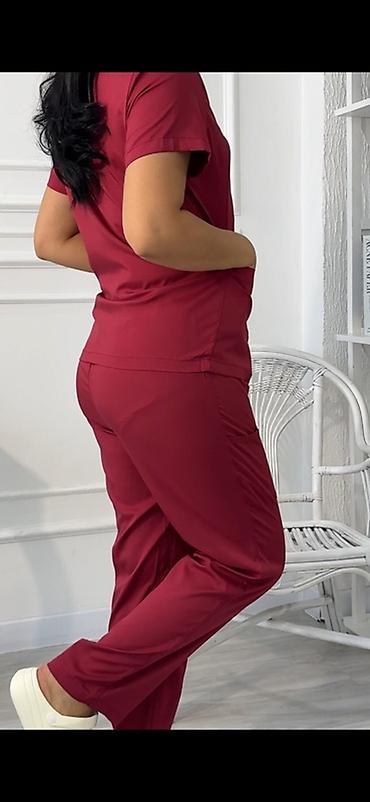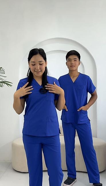 - Фасон: классический скраб с V-образным вырезом и прямыми брюками.
