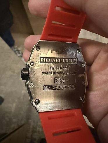 - Задняя крышка с гравировкой: “RICHARD MILLE”, “SWISS MADE”, “WATER RESISTANT 50M”, маркировка “RM35-01 AOCA/203”