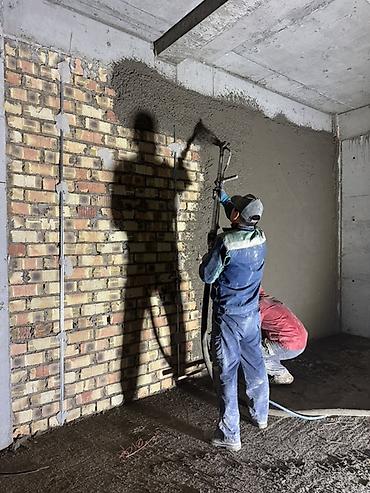 - Выполняем штукатурные работы машинным способом по кирпичу, и блокам.