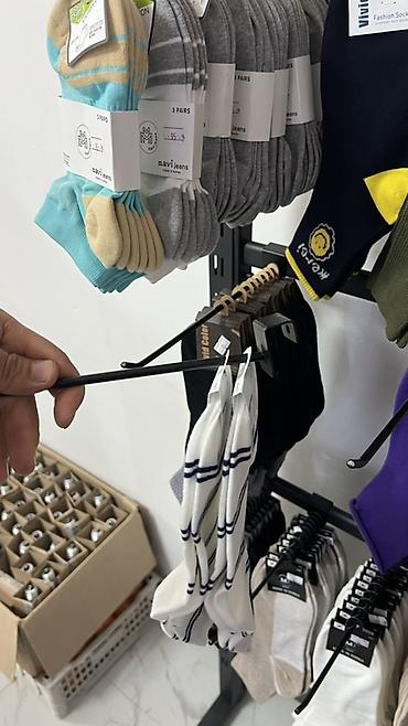 Металлическая торговая стойка/стеллаж для продажи носков и мелкой одежды.