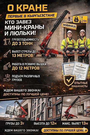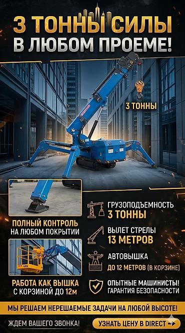 Мини кран паук Впервые в Кыргызстане — мини-краны пауки для самых сложных проектов! Там, где не пройдет обычный автокран, в дело вступает наша техника. Мы привезли в страну совершенно новые мини-...