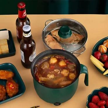 Подходит для дома, офиса, общежития и поездок: удобно готовить порционные блюда, экономит место и электроэнергию. Цвет корпуса: темно-зеленый с бежевыми элементами. На коробке: Electric Cooker, модель HY-503, «Gives you a warmer home».
