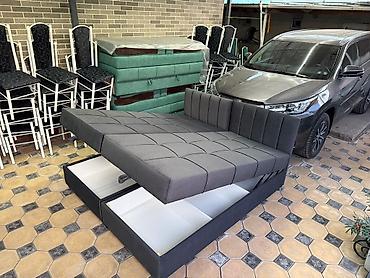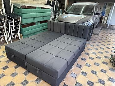 Угловая модульная тахта/диван-кровать с подъемным механизмом и вместительными ящиками для хранения.