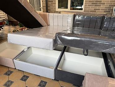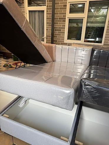 - Хранение: большие встроенные короба под каждой секцией, глубокие и полностью облицованные.