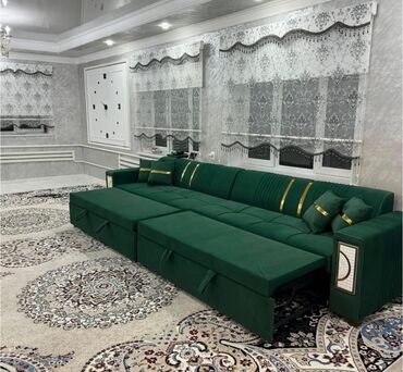 Элегантный модульный диван глубокого зеленого цвета, способный трансформироваться в большое спальное место. Обивка из мягкого велюра обеспечивает комфорт и приятные тактильные ощущения. Диван оснащ...