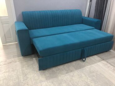 Элегантный диван-кровать насыщенного синего цвета, оснащенный механизмом трансформации для быстрого превращения в спальное место. Обивка из мягкой ткани приятна на ощупь, а вертикальная прострочка на спинке и боковинах придает дивану современный и стильный вид. Под сиденьем скрывается удобный ящик для хранения белья. Идеально подходит для гостиных, спален или студий, где важна функциональность и экономия пространства. Надежное решение для ежедневного использования.