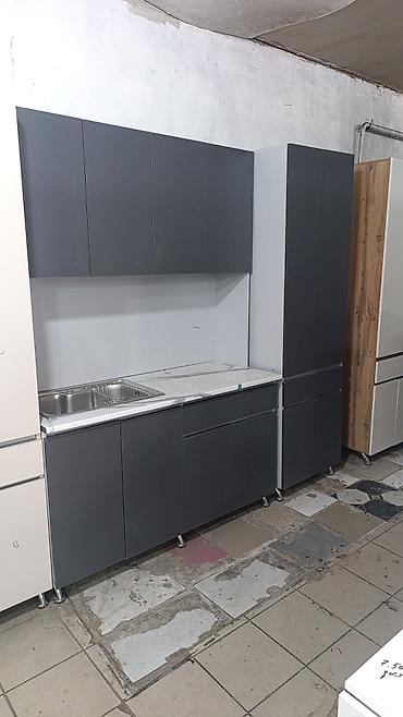 - Цвета на выбор: графит, белый, светлый беж; комбинирование матовых фасадов и древесной столешницы