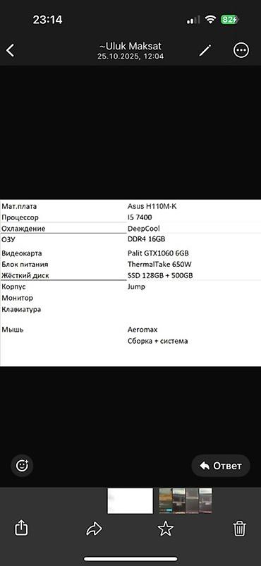Игровой/рабочий ПК Комплект: - Системный блок ATX с подсветкой кулера - Монитор LG (диагональ ~23–24", Full HD) - Проводная игровая клавиатура с RGB‑подсветкой - Проводная игровая мышь с подсветк...